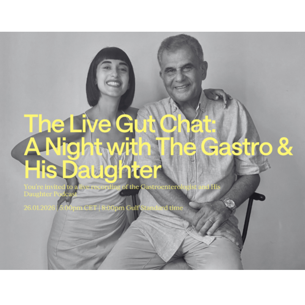 You’ve listened to us in your ears, now join us in the room. Sandra and Dr. Wagdy open the doors for a live, unfiltered recording of “The Gastroenterologist and His Daughter.” Bring your burning gut questions, your weird symptoms, and your best guesses at what’s actually causing them. We’ll break down the facts, debunk the nonsense, and share the stories we can’t tell anywhere else. A smart, funny night for people who love good science and good company. Sign up here.